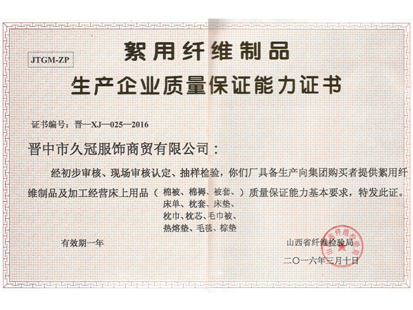 山西久冠服飾有限公司位于晉商故里山西省晉中市。公司注冊商標“久冠”,是山西省教育學(xué)會學(xué)生服被裝專業(yè)委員會會長單位,中國質(zhì)量萬里行促進會理事單位,中國教育裝備行業(yè)協(xié)會學(xué)校后勤裝備管理分會常務(wù)理事單位。